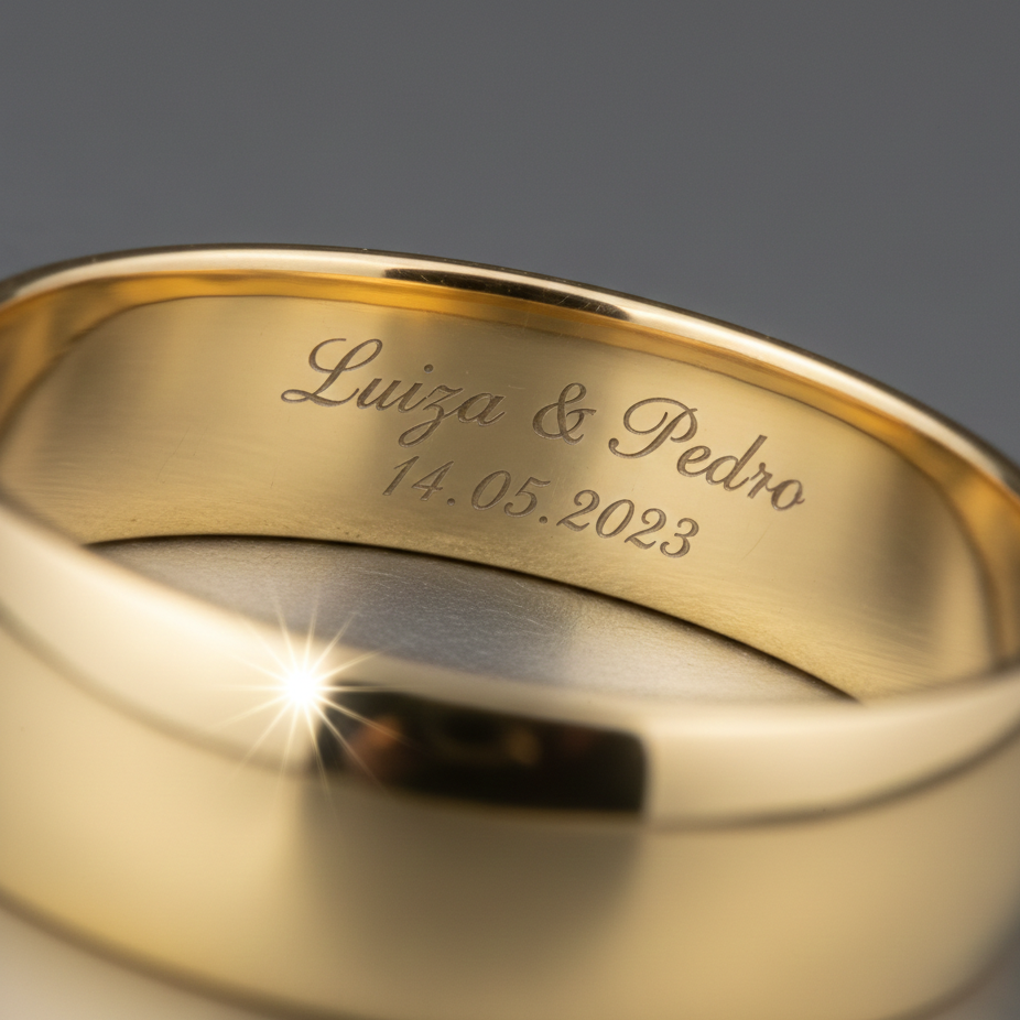 Somos uma oficina de ourivesaria em Santos especializada em gravação em joias e objetos metálicos, utilizando equipamentos de alta precisão para personalizar peças com nomes, datas, iniciais, símbolos e frases especiais.